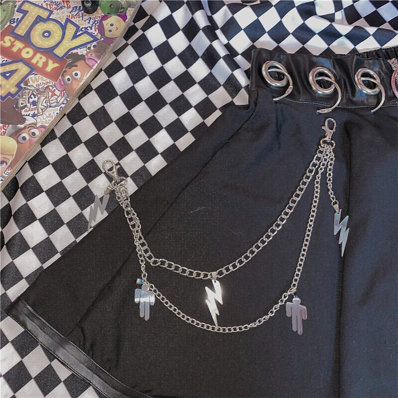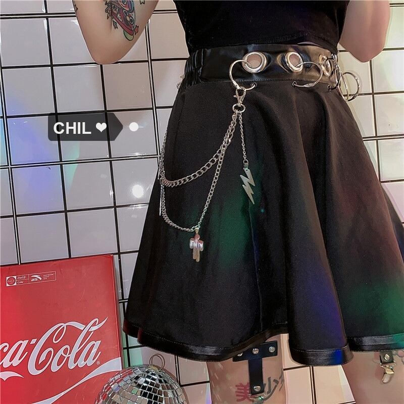 スタイルダークブラックリング ジッパースカート チェーン ウェスト 夏物 指輪 ステッチ ウエスト CHIL38483510374