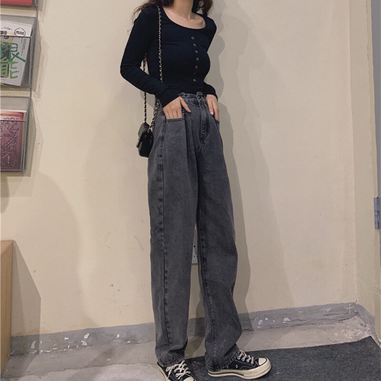 ジーンズ 秋物薄手グレーワイドレッグルーズパンツ オータム ワイドパンツ ウエスト CHIL68276422601