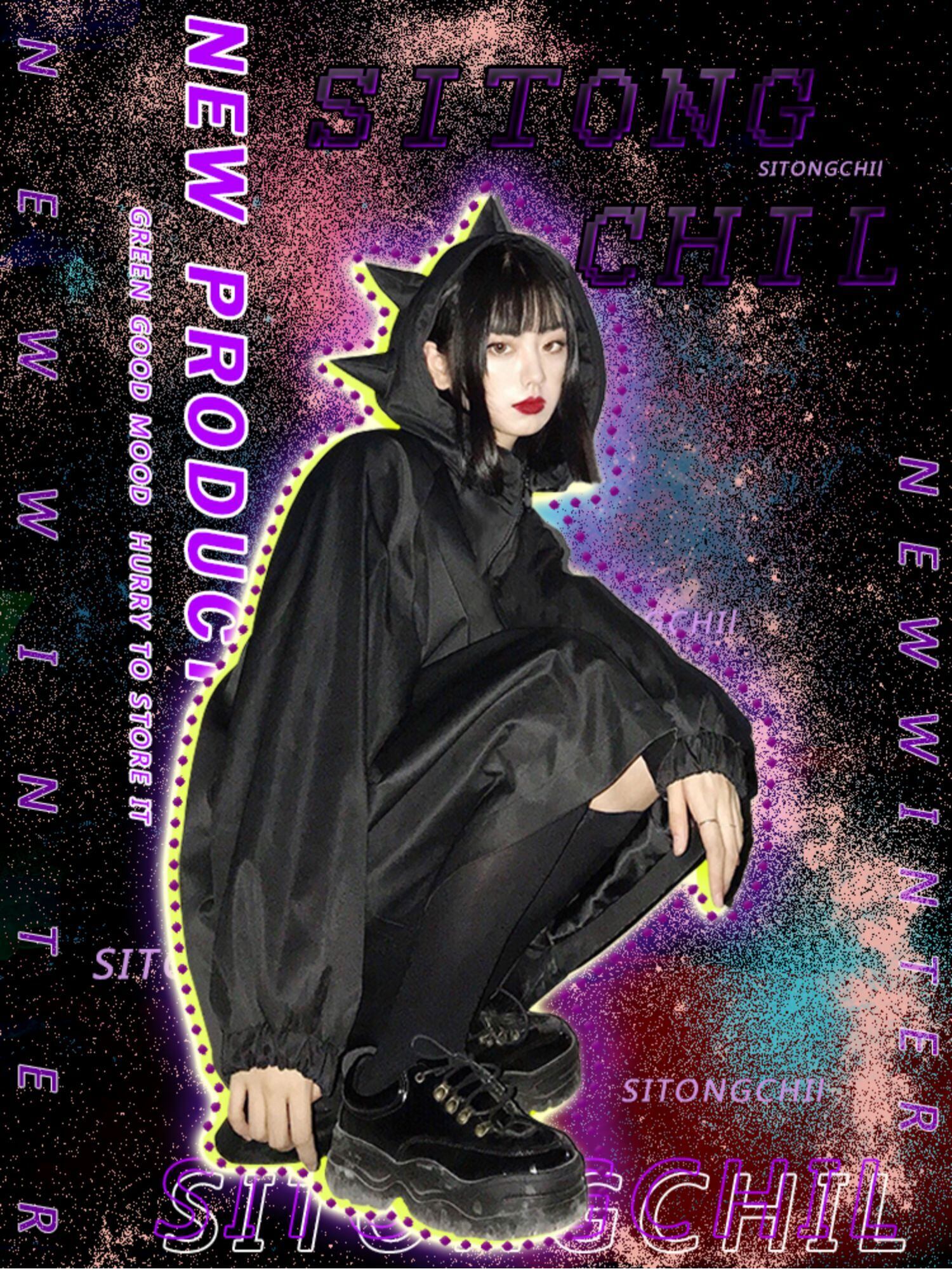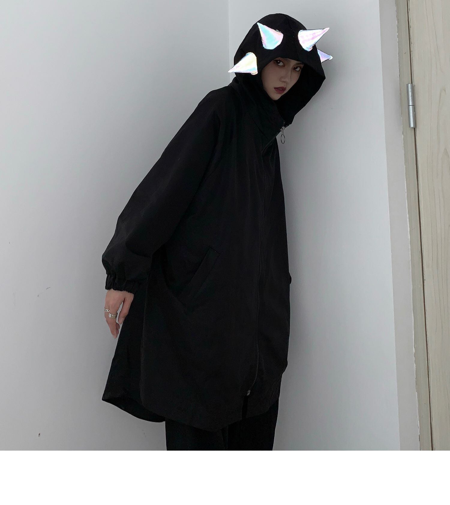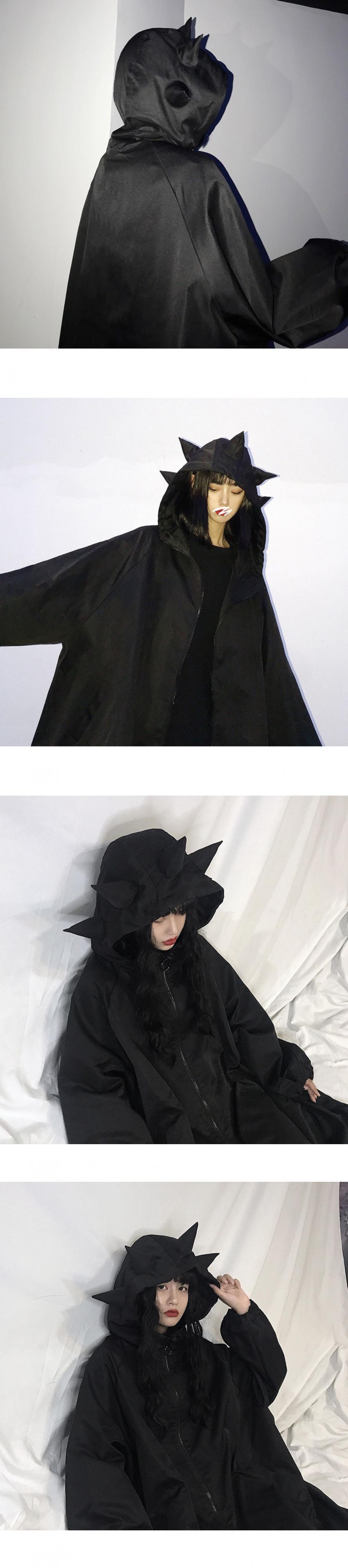 ウィンターコート レディースルーズダークブラックフード 大きめサイズ オータム 秋物 冬物 ミドル丈 CHIL5143272480