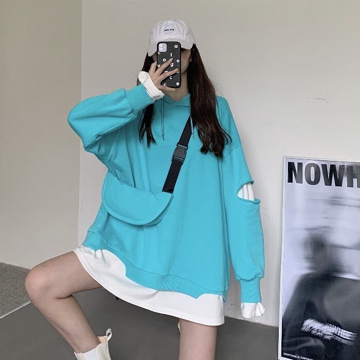 スプリング秋物セーター レディースルーズブラウス フードジャケット ストリート 春物 オータム バックパック リュック ステッチ CHIL41515699247