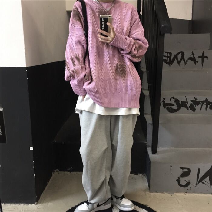 トレンドスタイルラウンドネックセーター レディーススタンダードルーズパターンプルオーバー レトロ ストリート 原宿 Oネック CHIL60295215257