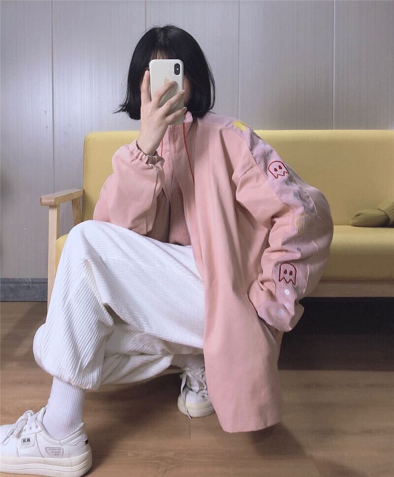 ジャケット レディース秋物ウィンタースタンダードルーズ刺繍オーバーサイズ ピンク コットン レトロ 原宿 オータム 冬物 ボーイズ CHIL17603755806
