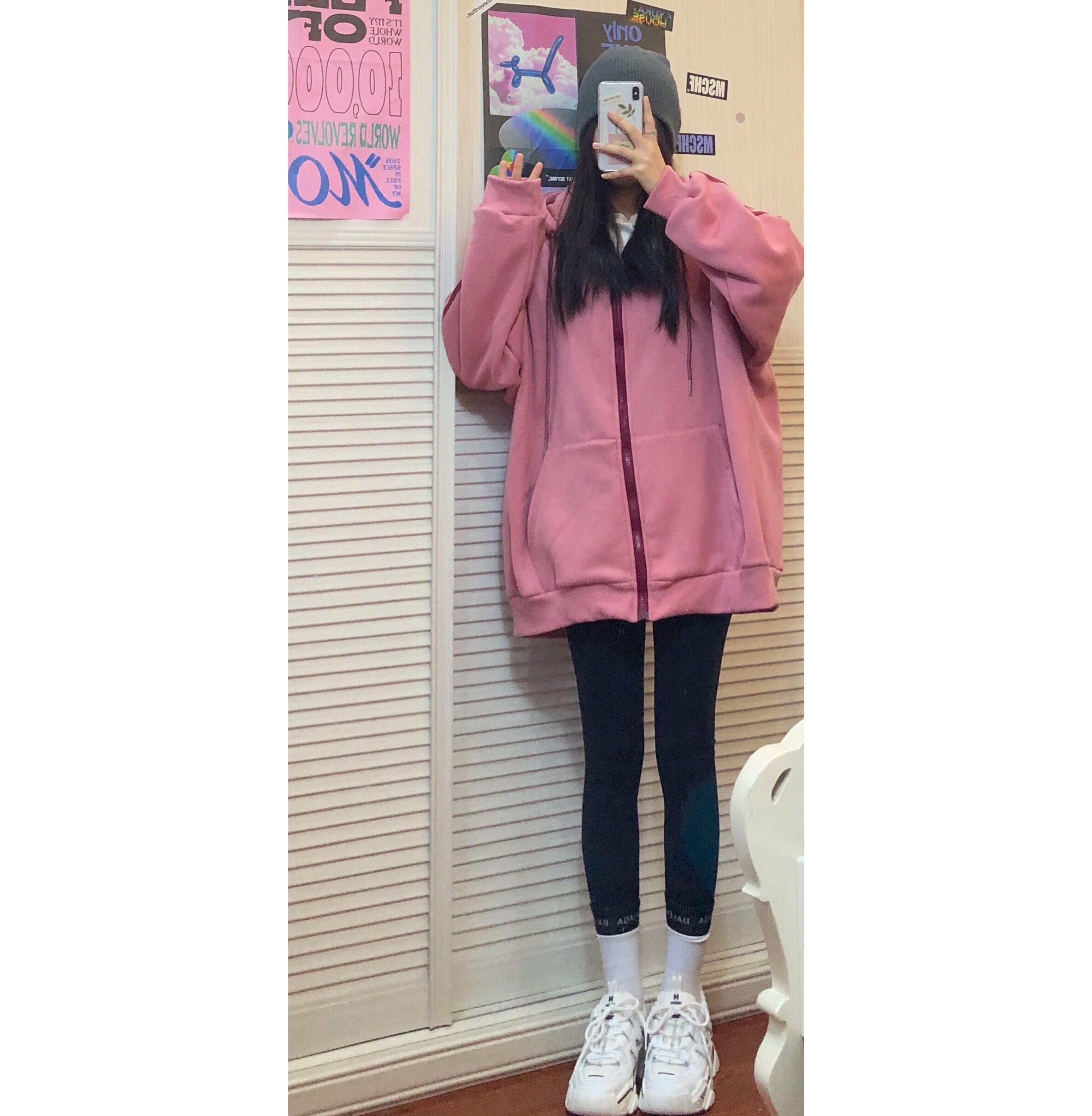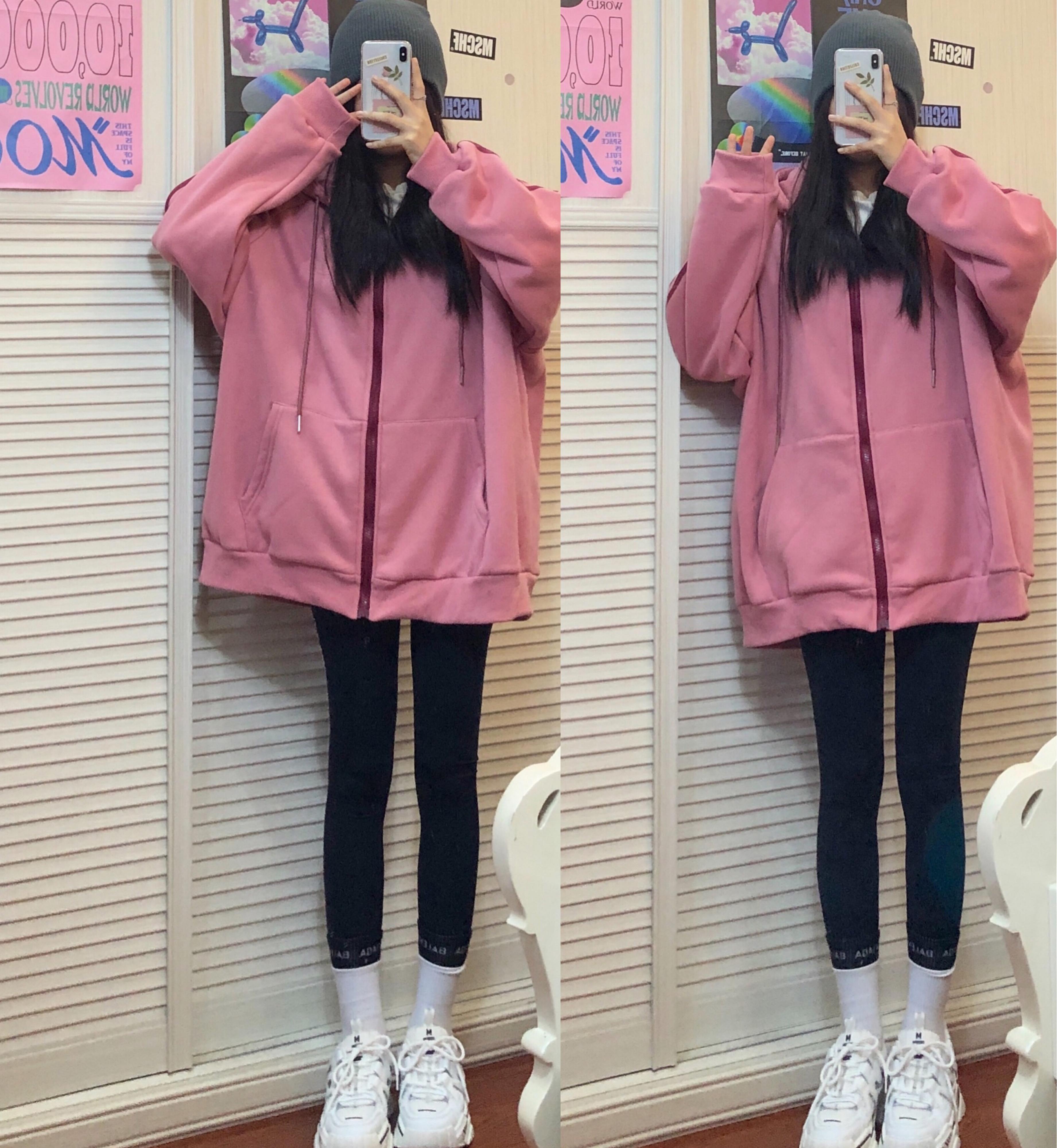 韓国ファッショントレンドカラージッパーフードセーター カジュアルジャケット パンツ スタイル CHIL7250120329