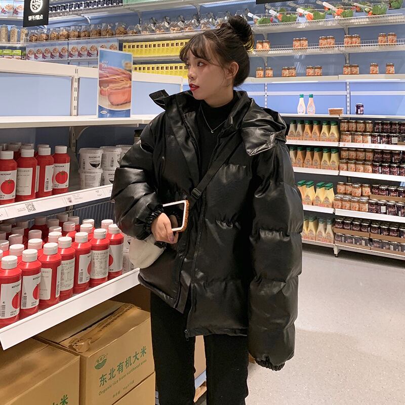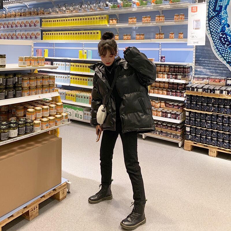 レザーレディース秋物ウィンター韓国ファッションブラックジャケット コットン オータム 冬物 スタイル CHIL73053940344