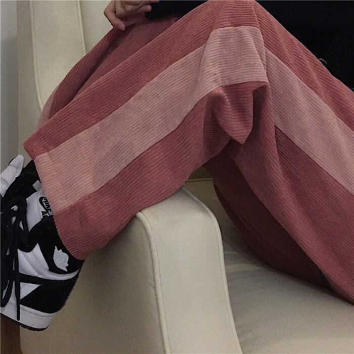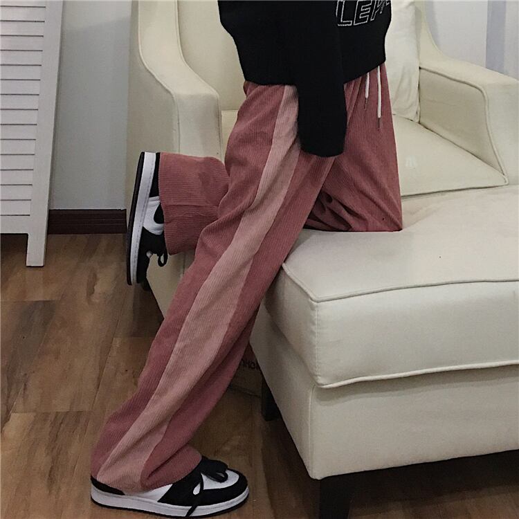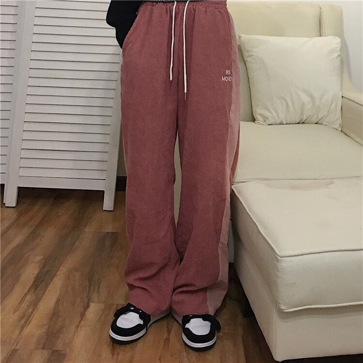 コーデュロイカジュアルパンツ レディース秋物ウィンター韓国ファッショントレンドスタンダードカラー刺繍 レトロ オータム 冬物 CHIL19095481523
