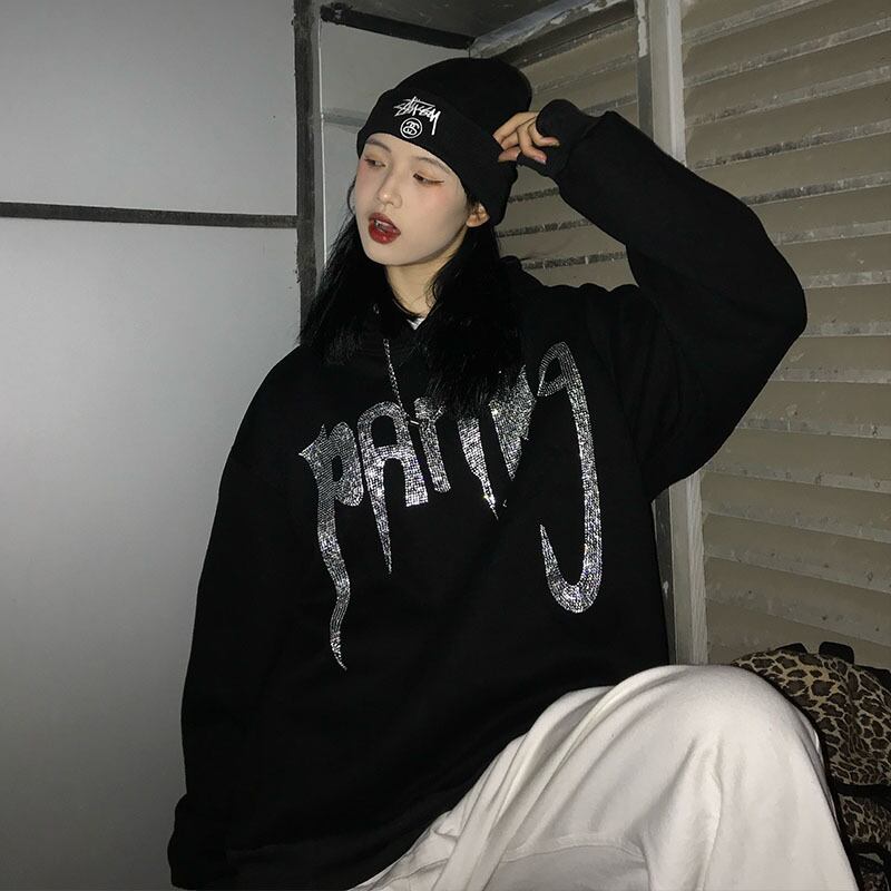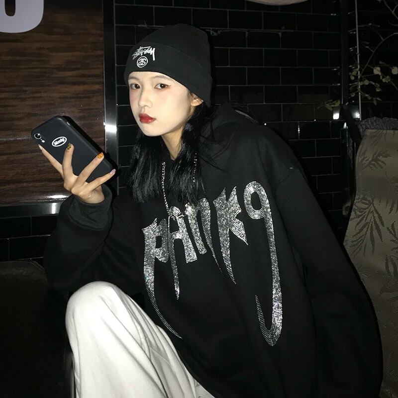 秋物ウィンターセーター レディースブラックスタイルルーズフードジャケット トレンド ストリート オータム 冬物 CHIL20440732052