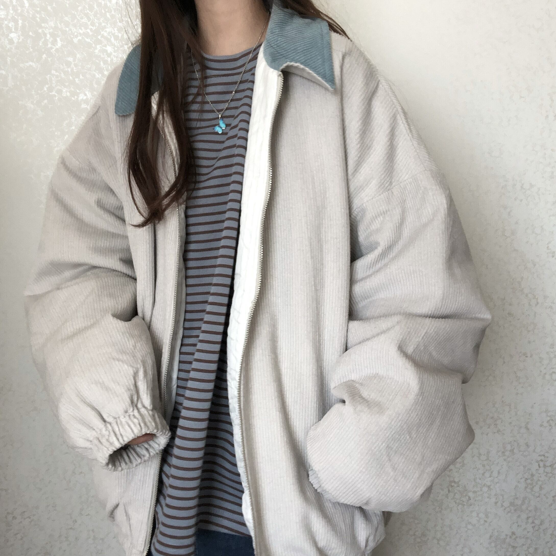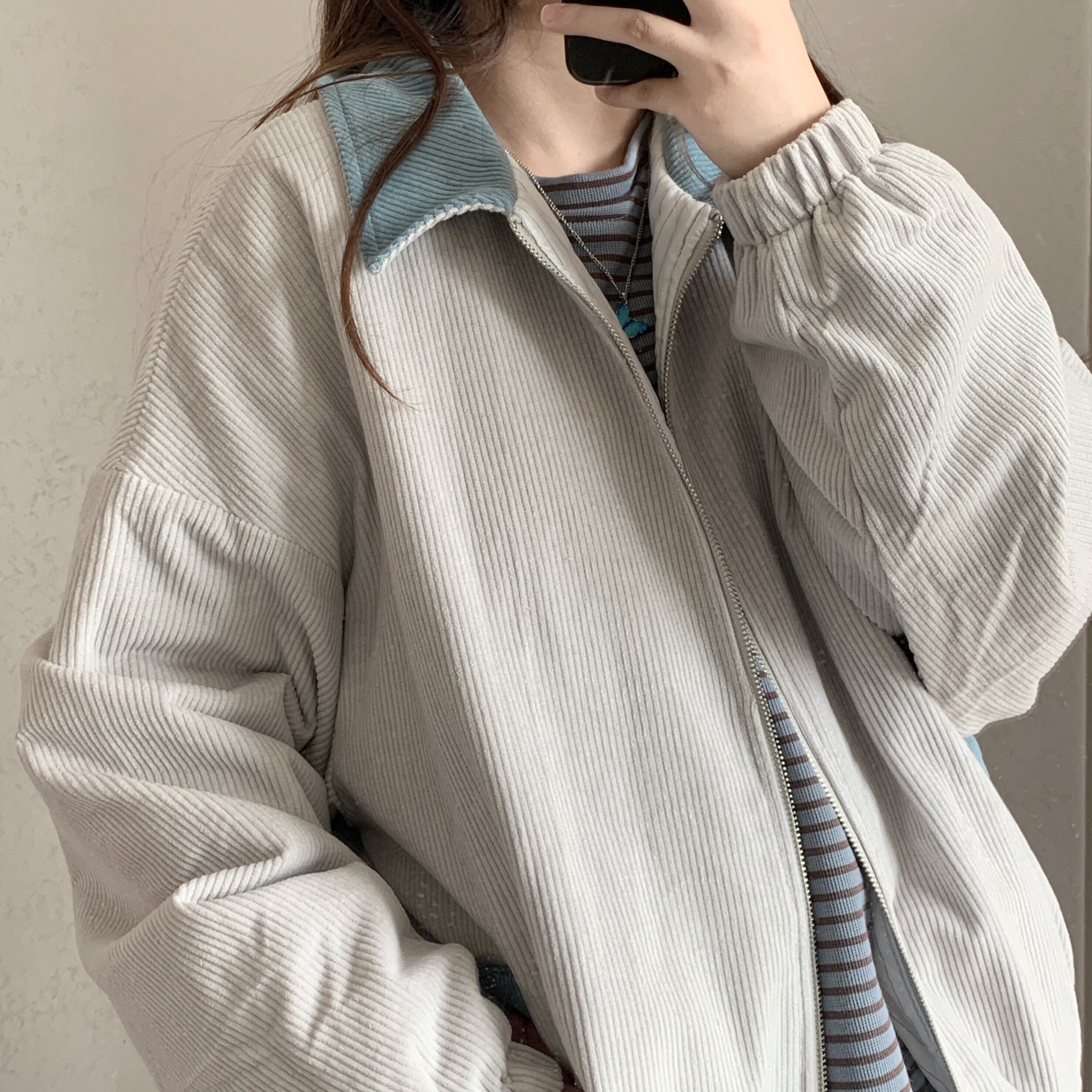 秋物ウィンターコート レディーストレンドグレーブルーカラージャケット ロング コットン オータム 冬物 長袖 CHIL48509548522