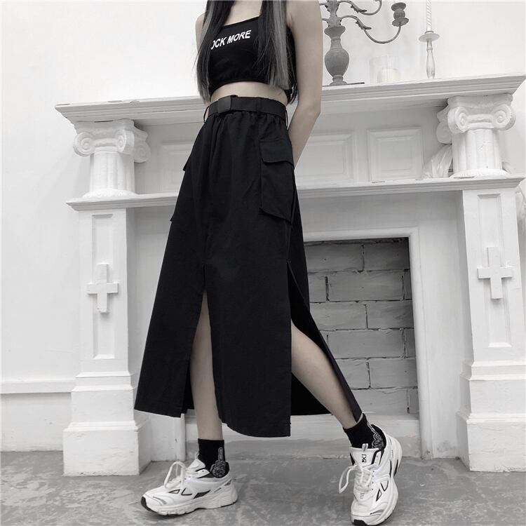 ダークルーズスリットポケットスカート ベルト ハーネス ミドル丈 CHIL70109350413