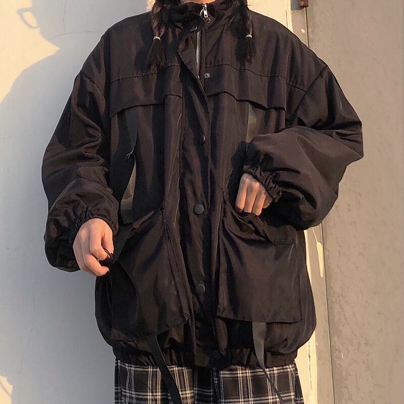 ブラックジャケット レディース秋物ウィンター韓国ファッショントレンドポケットルーズ オータム 冬物 CHIL65953363628