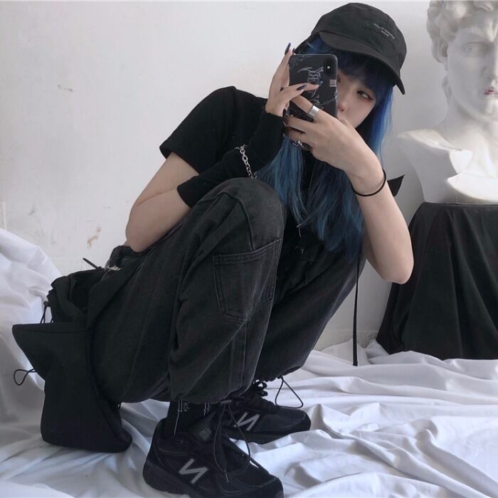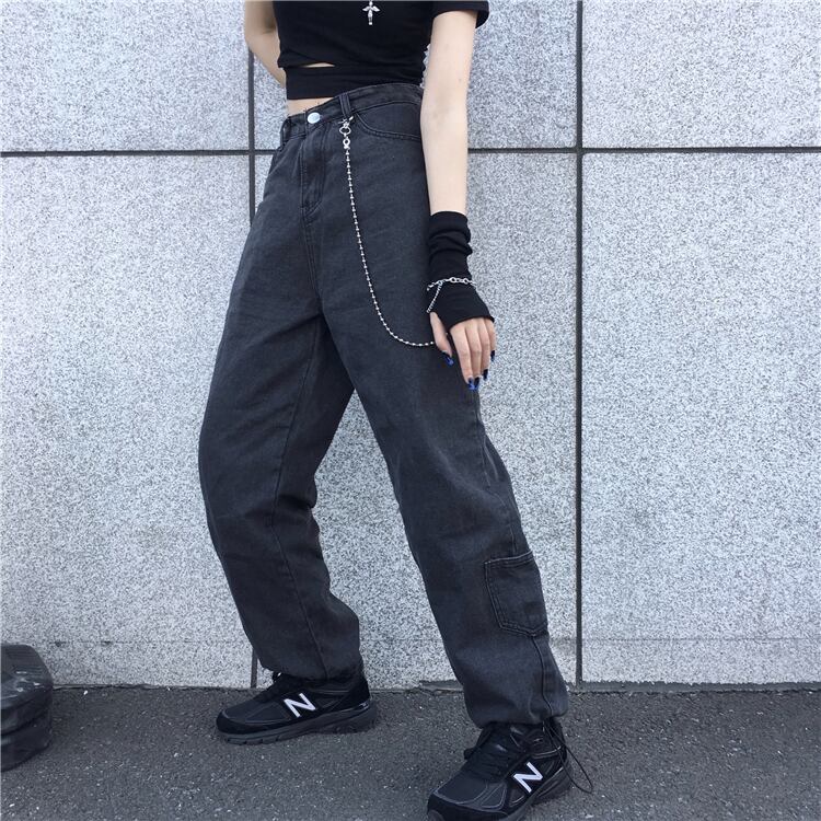 トレンドメンズレディースブラックグレーポケットギャザージーンズ ボーイズ CHIL62959959352