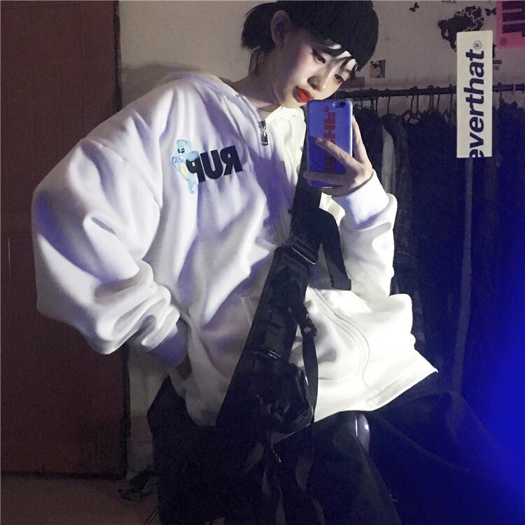 ウィンタージャケット 韓国ファッションスタンダード刺繍ジッパー厚みフードポケットセーター レトロ 冬物 CHIL676927175