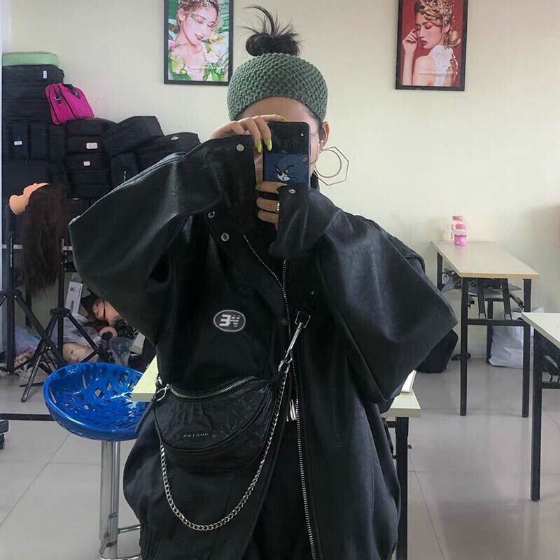 レザージャケット レディース韓国ファッションオーバーサイズスタンダードルーズ レトロ 原宿 ボーイズ スタイル CHIL72120147618