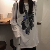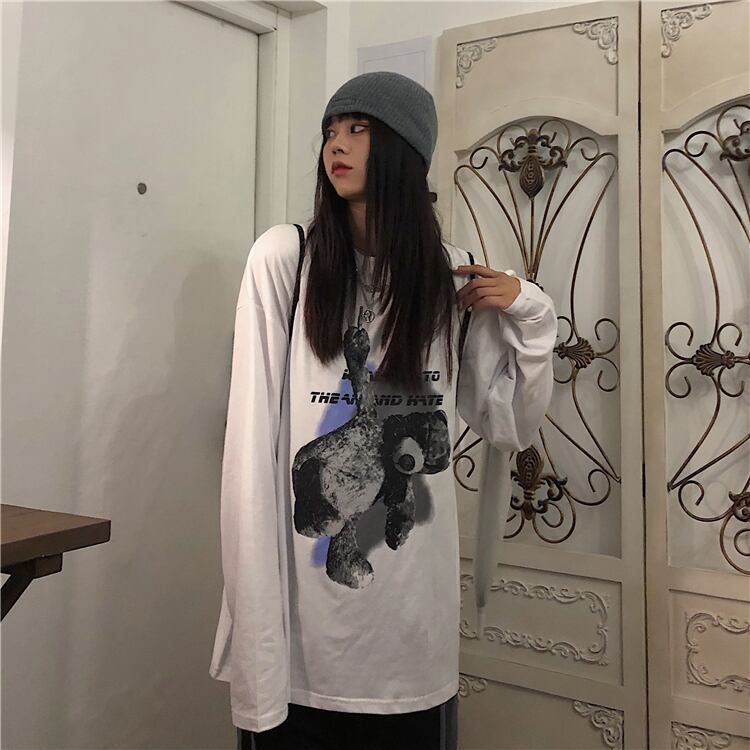 秋物韓国ファッションスタイルダークブラックプリントルーズTシャツメンズレディーストレンド ロング 原宿 オータム 長袖 CHIL50746556334
