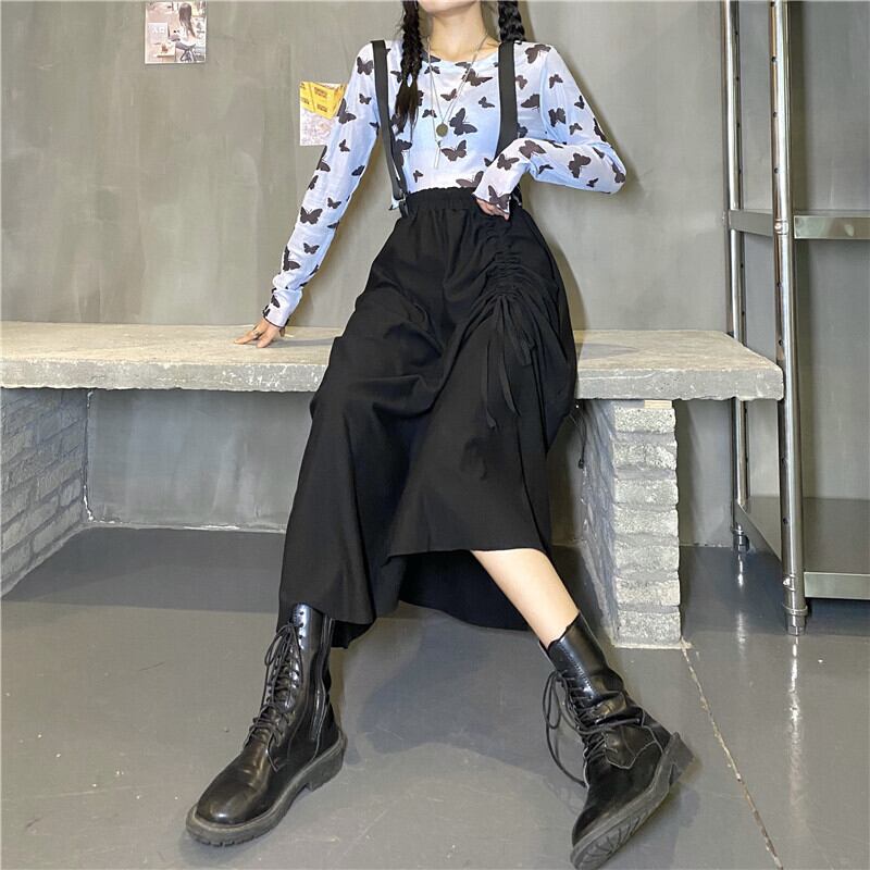 ギャザースカート 秋物スタイルスタンダード薄手ロング レトロ オータム アジャスタブル CHIL80303488909