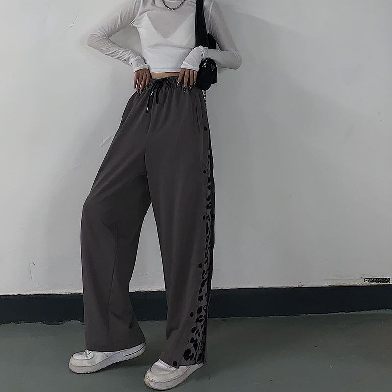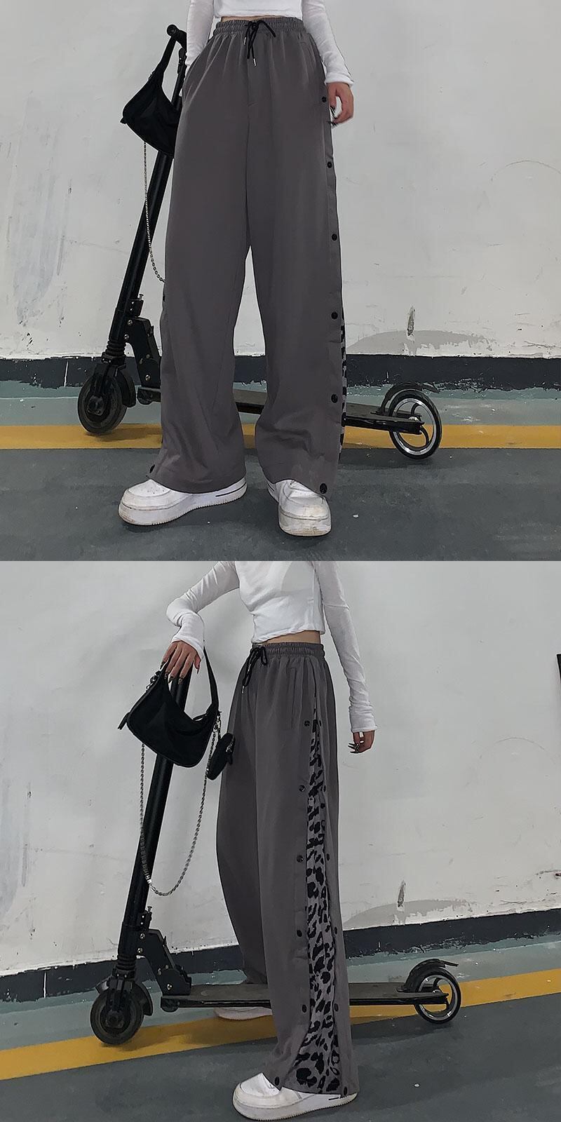 秋物ウィンターレオパードパターンボタンスタンダードルーズカジュアルパンツ レトロ ストリート オータム 冬物 ステッチ CHIL60817471471