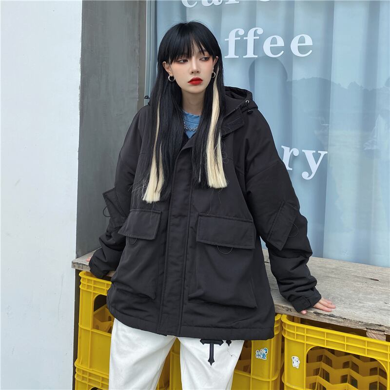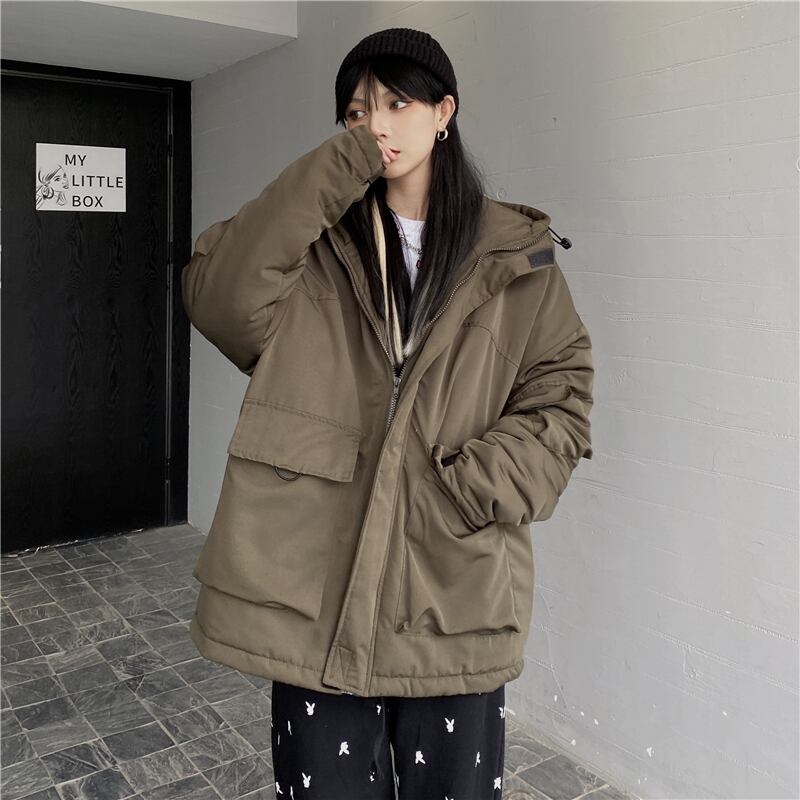 ウィンタースタンダードカーキジャケット レディース韓国ファッショントレンドルーズフードコート コットン レトロ 冬物 スタイル CHIL30741143401