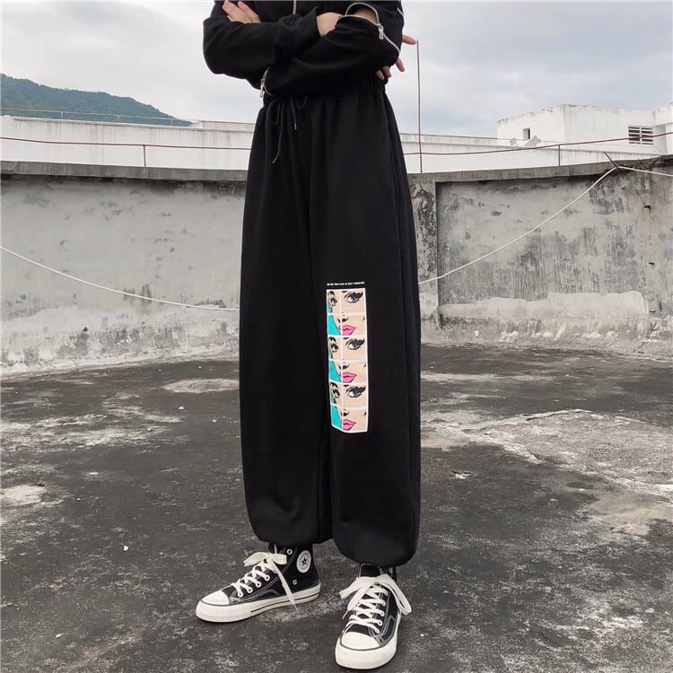 韓国ファッショントレンドスタイルプリントルーズレディースカジュアルパンツ 原宿 CHIL68392394621