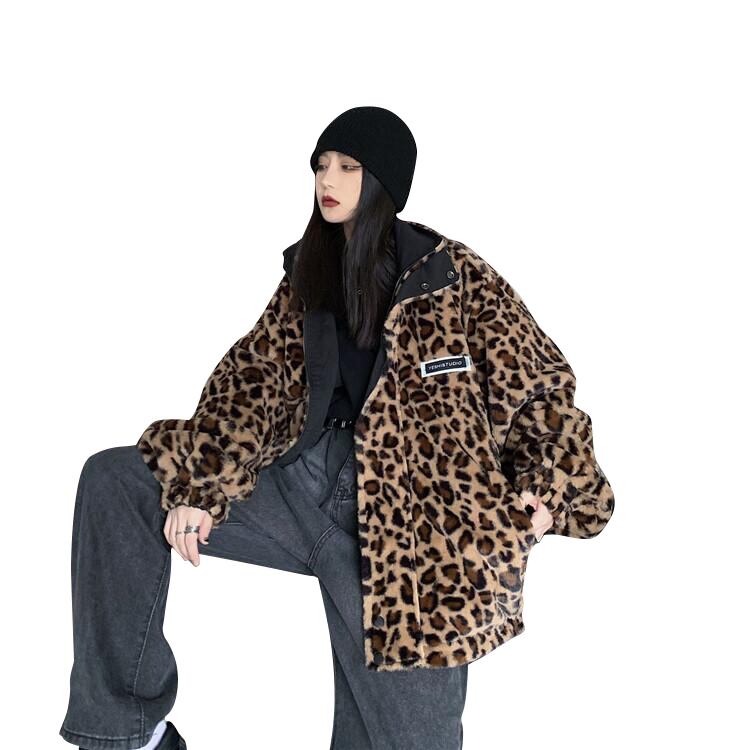 レオパードプリント柄ジャケット レディーストレンドルーズウール コットン CHIL18166744295