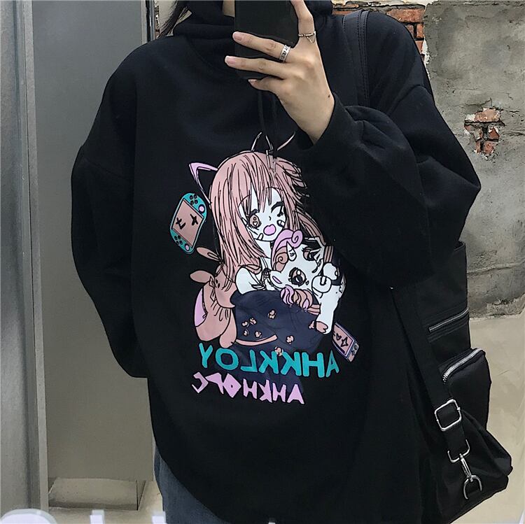 セーター 秋物ウィンタートレンドプリントルーズフードジャケット 原宿 オータム 冬物 CHIL68486526291