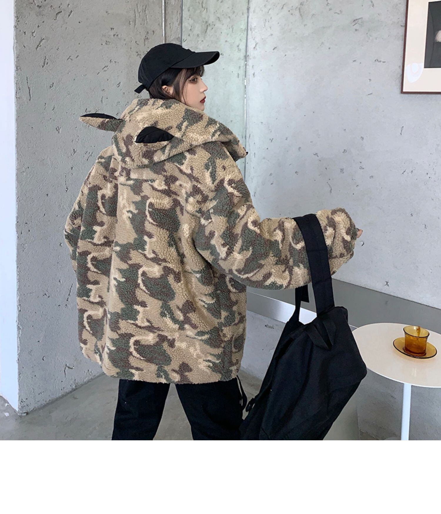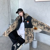 迷彩柄ウールコート レディースウィンタールーズ韓国ファッションスタイルフード コットン 冬物 CHIL94679212845