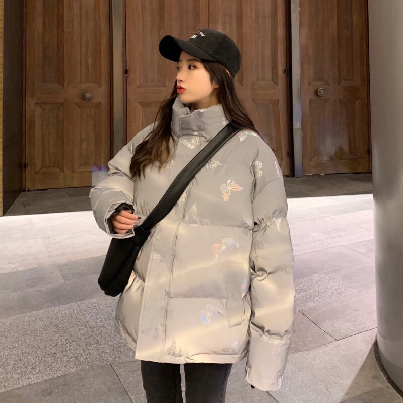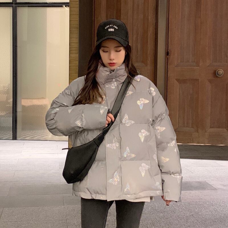 秋物ウィンタージャケット レディース韓国ファッショントレンドButterflyデザイン プリントルーズ コットン オータム 冬物 スタイル CHIL52171572707