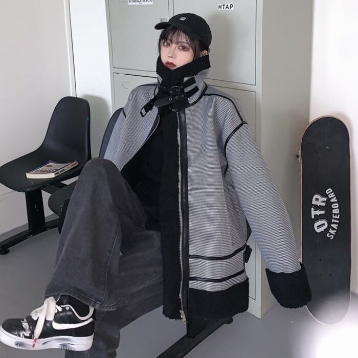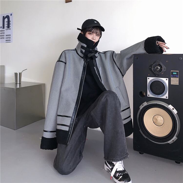 ウィンターウールコート レディース韓国ファッションルーズスタンドカラーカラーファーワンピース コットン 冬物 ボーイズ CHIL34162796282