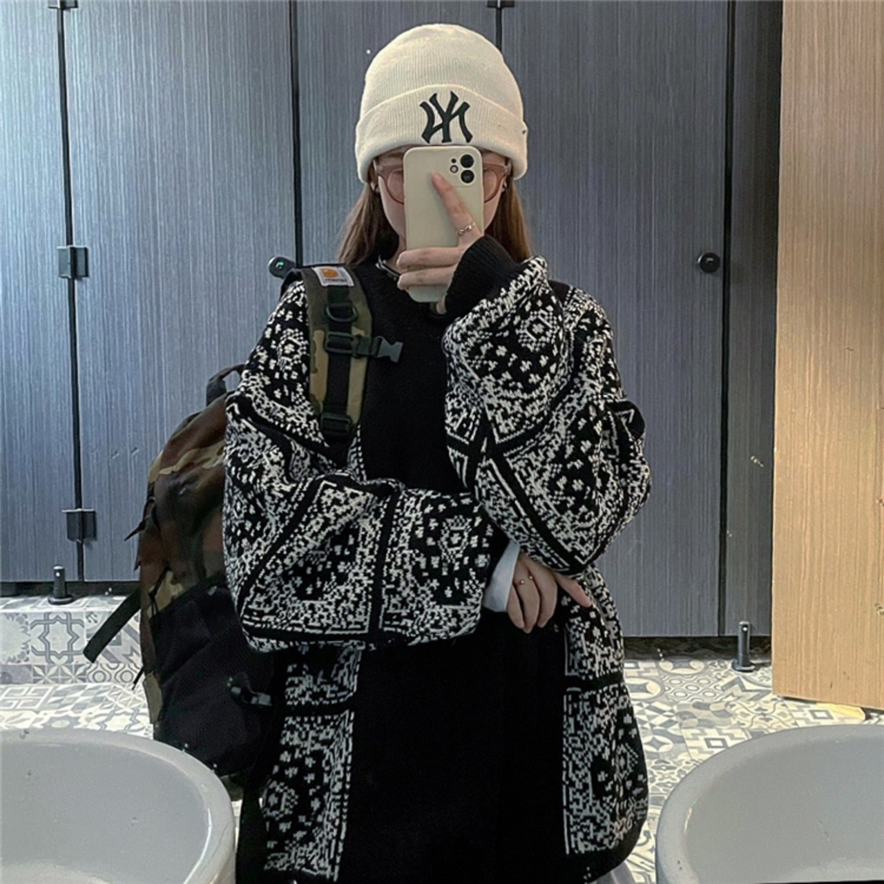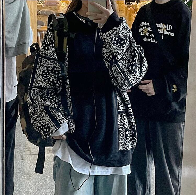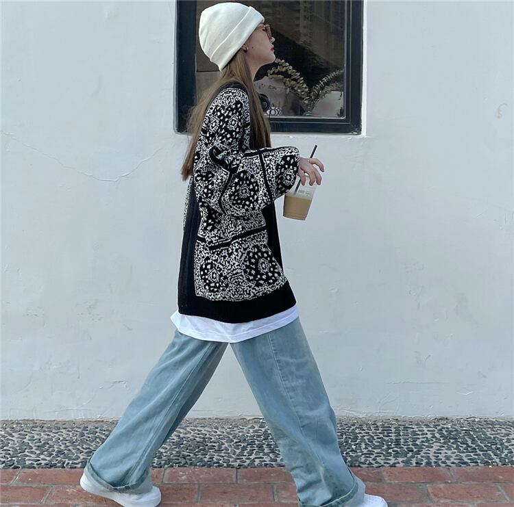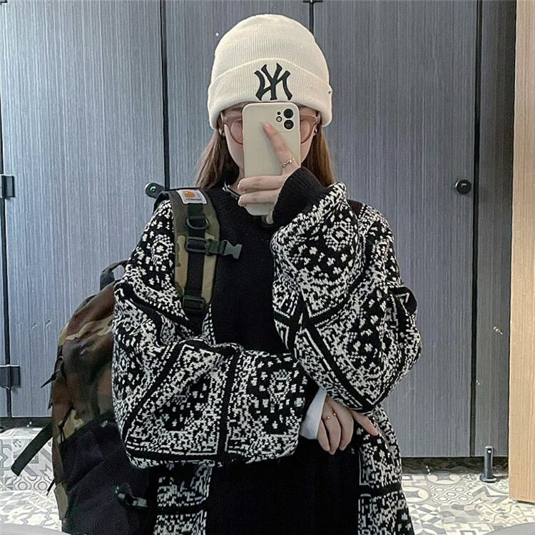 スタンダードスタイルルーズジャカードニット長袖スリーブセーター レディース ロング レトロ ウィンター 冬物 CHIL53743215597