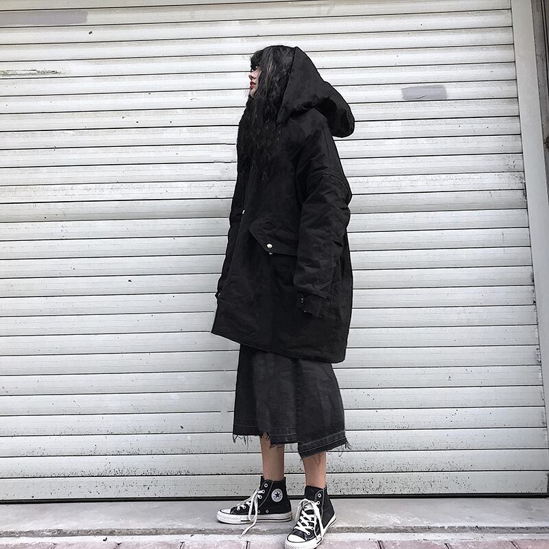 ウィンターフードジャケット レディースメンズダークルーズスタンダードトップス コットン レトロ 冬物 ボーイズ CHIL55109598426