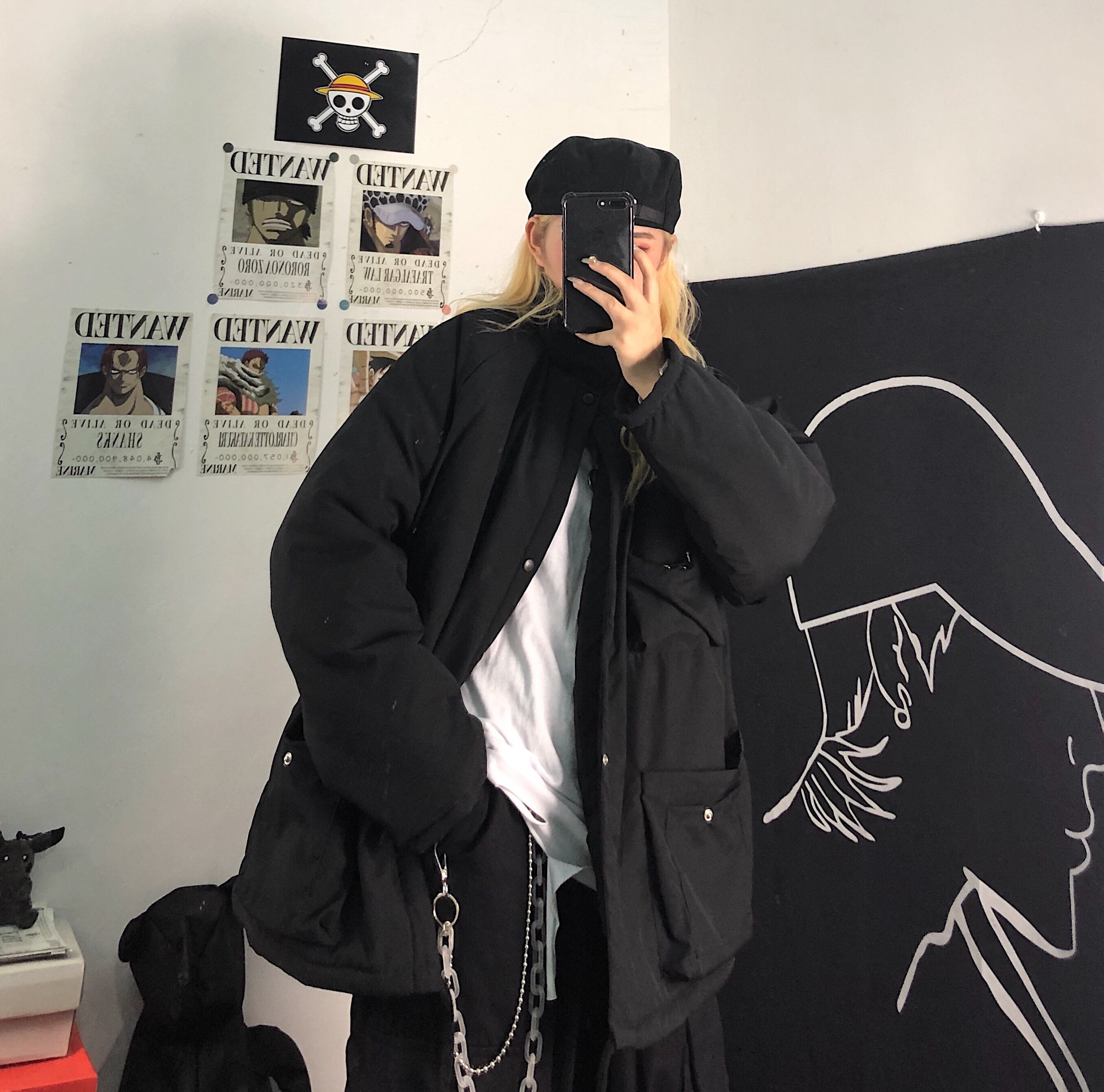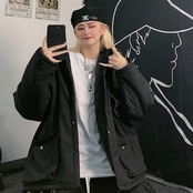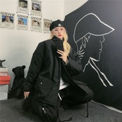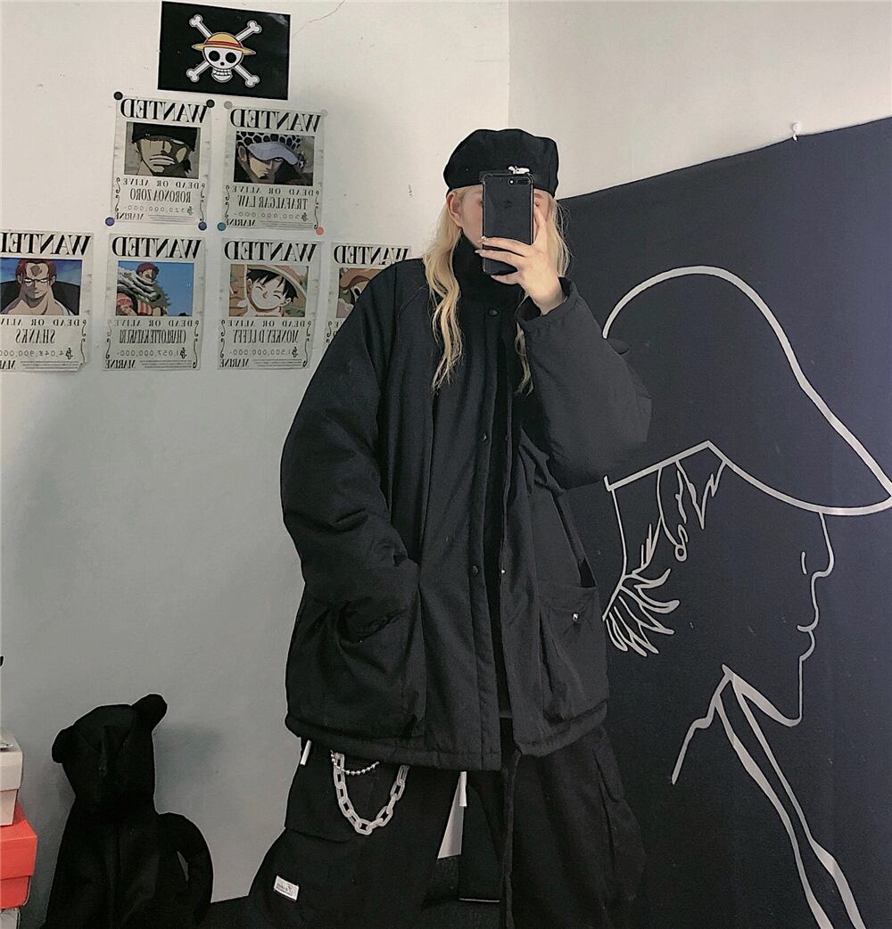 ブラックジャケット 韓国ファッションスタイルトレンドルーズ コットン ボーイズ ミドル丈 CHIL19305469010