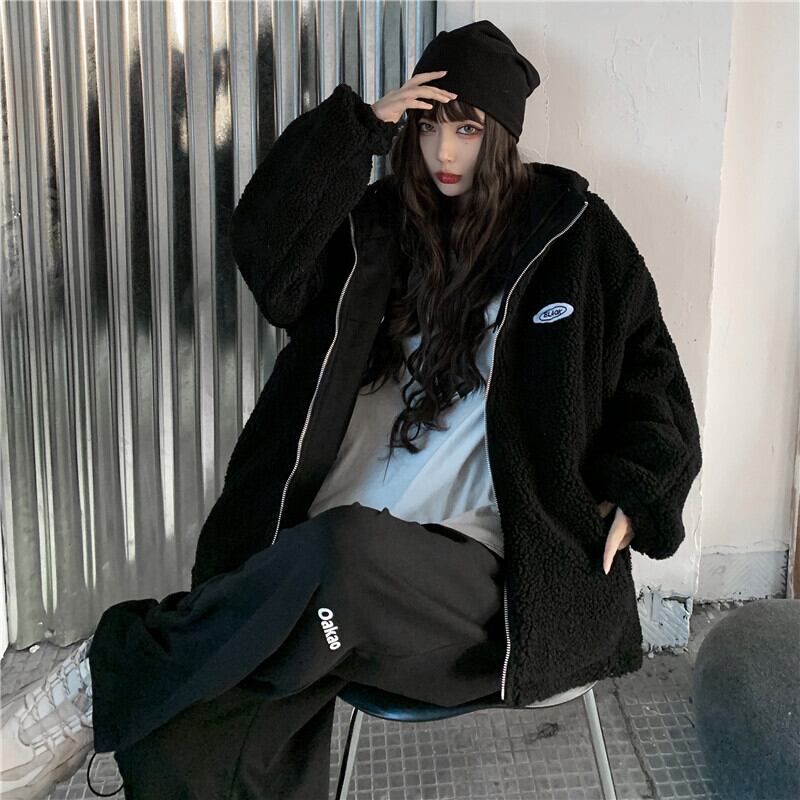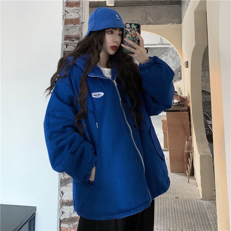 ウールコート ウィンター厚みルーズジッパーフードジャケット コットン 冬物 CHIL11829110480