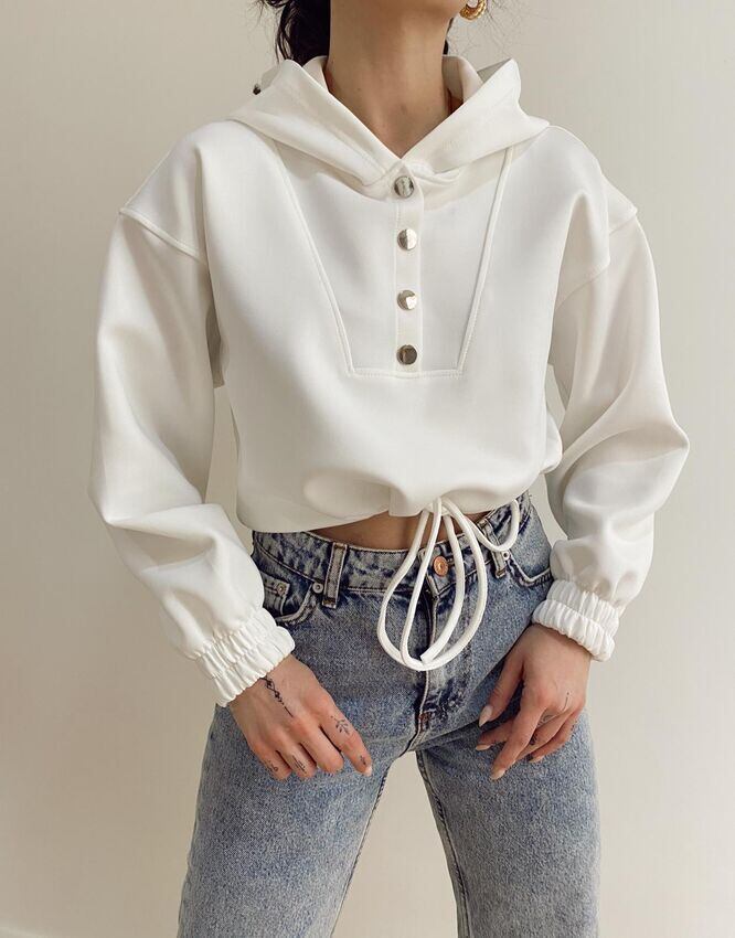 色:白い,最大ヤード重量:0.35kg,生地:空気層,綿70%ポリエステル30%,ベーシックなフード付きショートドローストリングトップ,12月24日発送予定で、安心して棚に並べられます!
