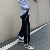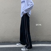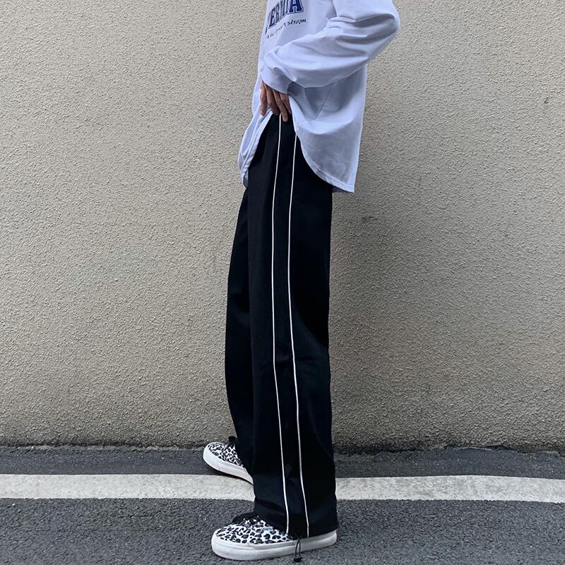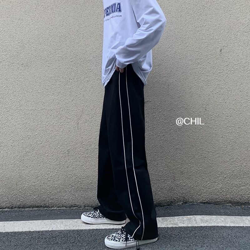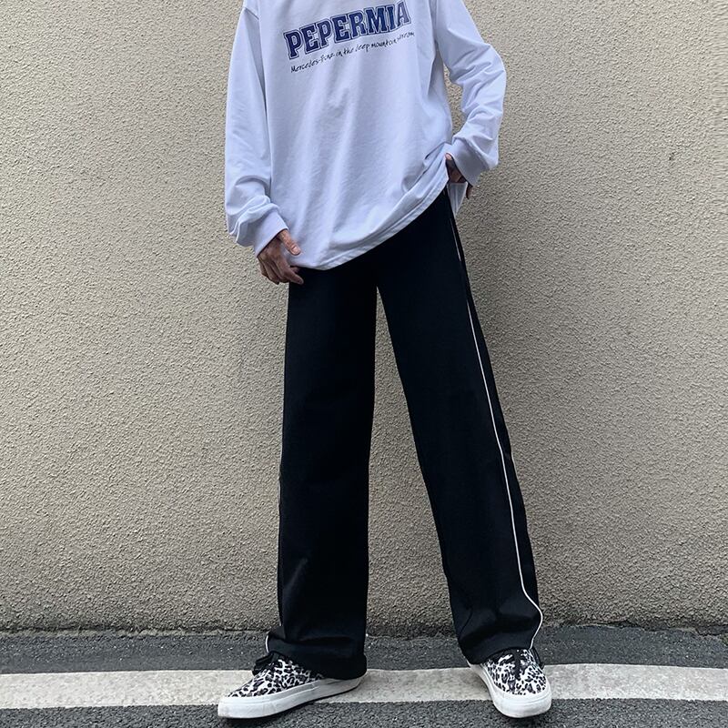 ウィンター韓国ファッショントレンドホワイトラインルーズカジュアルパンツ メンズレディースワイドレッグ 冬物 ワイドパンツ CHIL80266194234