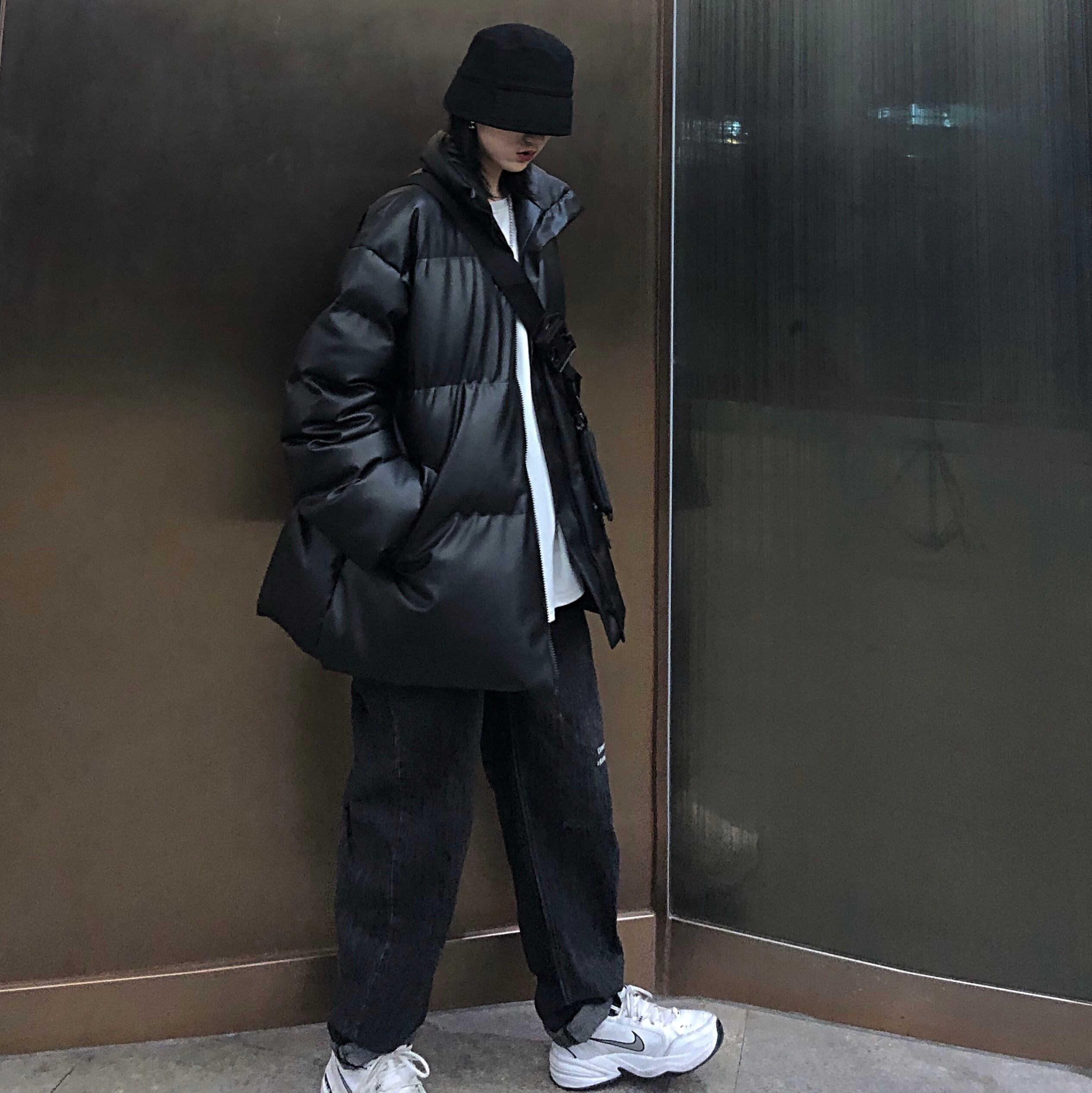 ウィンターレザーレディース韓国ファッションルーズブラックジャケット コットン 冬物 スタイル CHIL66509770826