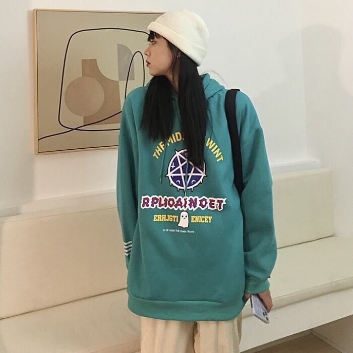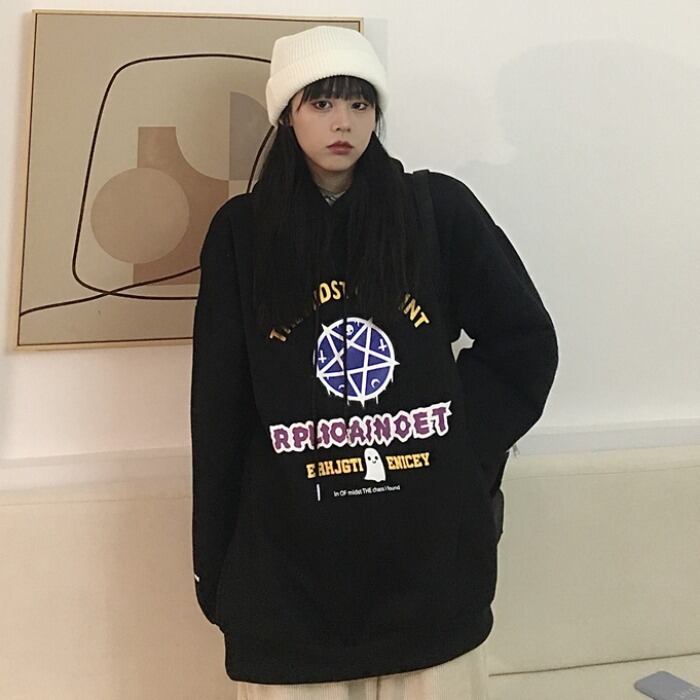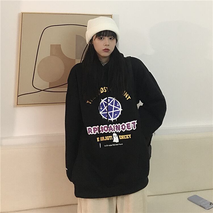 ウィンターセーター レディースメンズプリント厚みフードジャケット ロング 原宿 冬物 長袖 CHIL15449795362