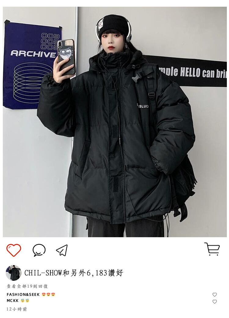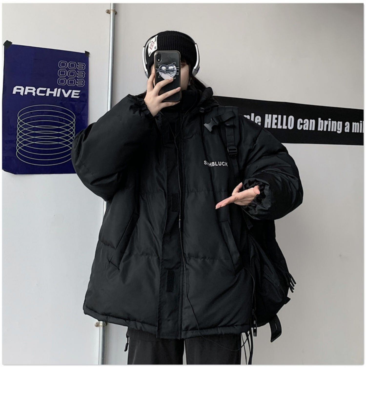 ブラックコート レディースメンズウィンター韓国ファッションオーバーサイズルーズ コットン 原宿 冬物 ボーイズ スタイル CHIL95194520367