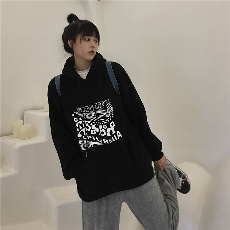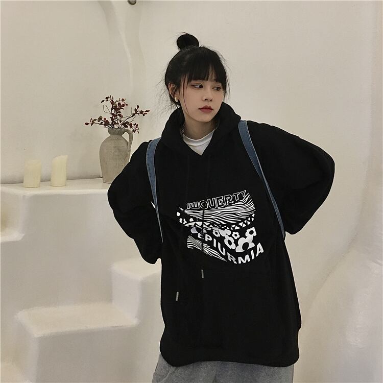 スタンダードパターンプリント厚みフードポケットセーター メンズレディース ロング レトロ 原宿 長袖 CHIL64943255166