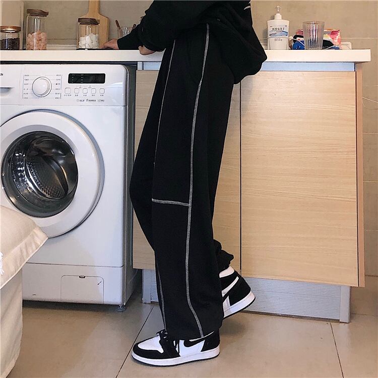 厚みレディース韓国ファッショントレンドスタンダードラインパンツ ルーズカジュアルメンズ レトロ CHIL76807557831