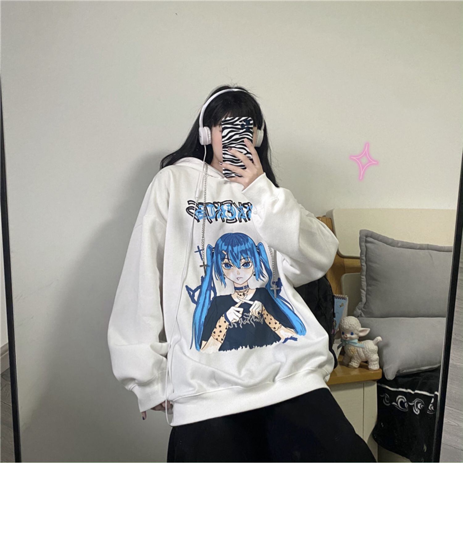 ウィンター厚みセーター レディースプリントルーズフードジャケット 冬物 ボーイズ CHIL12693124058