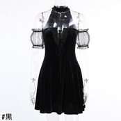 ダークスプリング夏服ワンピースレースストラップレスホルター 春物 夏物 ステッチ YU67623338222