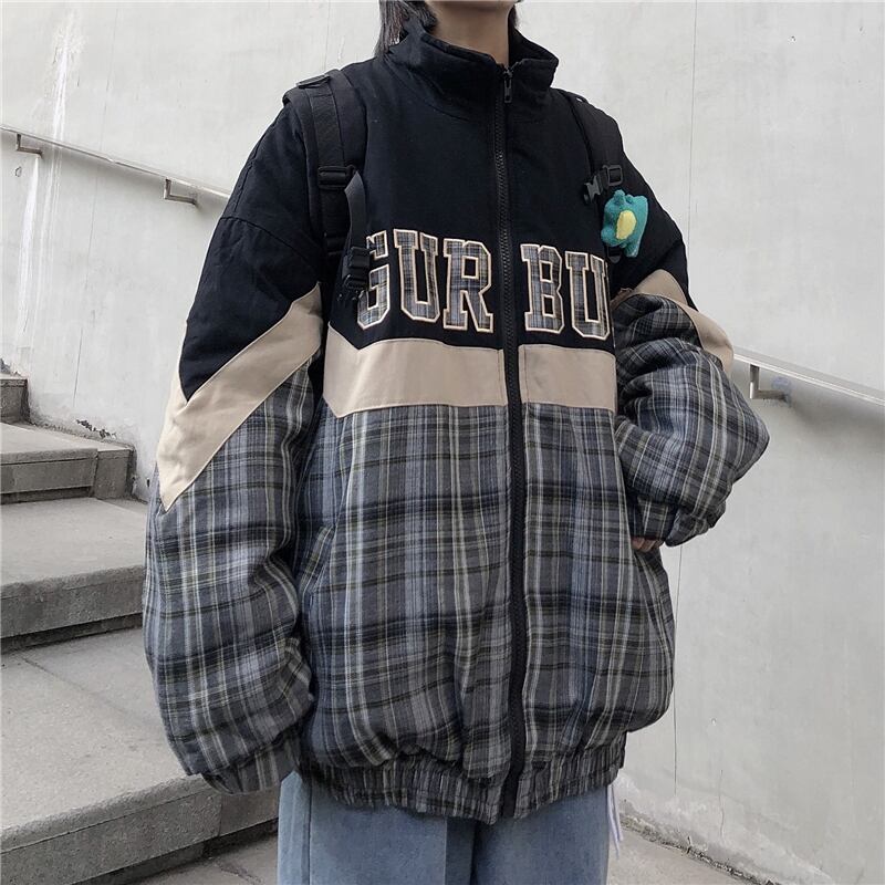 ウィンターコート レディース韓国ファッショントレンドスタンダード格子柄ジッパースタンドカラーカラー コットン レトロ 冬物 CHIL32951436671