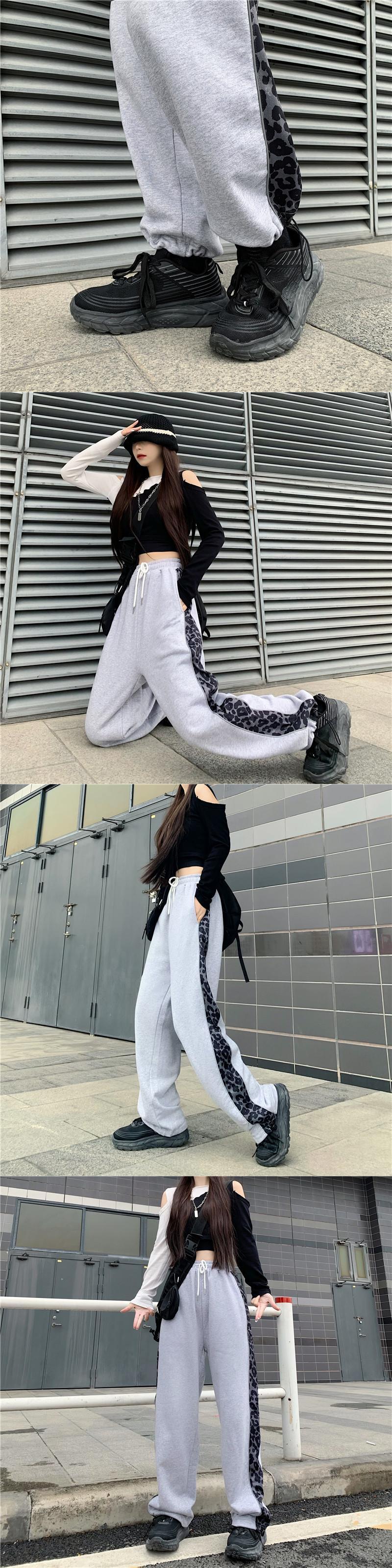 パンツ スプリングスタイルスタンダードブラックレオパードルーズカジュアル レトロ 原宿 春物 ステッチ CHIL51949972712