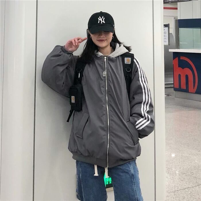 ウィンタージャケット 韓国ファッショントレンドルーズフードスタンダードレディース レトロ 冬物 ステッチ CHIL82245291923