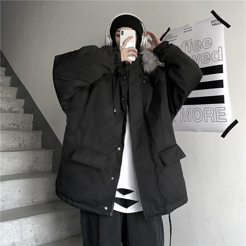 ウィンタージャケット レディース韓国ファッショントレンドルーズフードファーカラー コットン 冬物 ミドル丈 CHIL22504834807