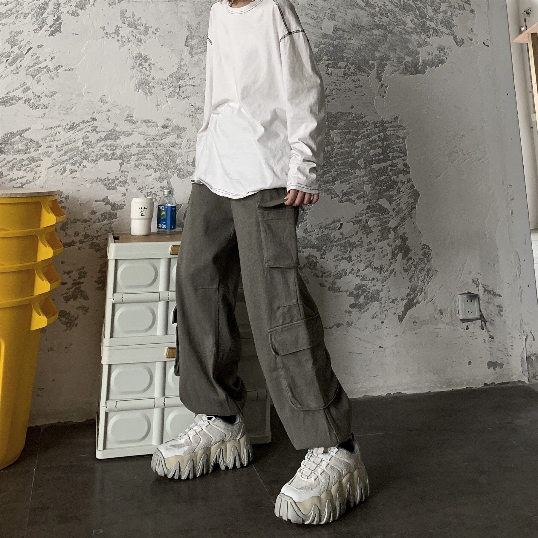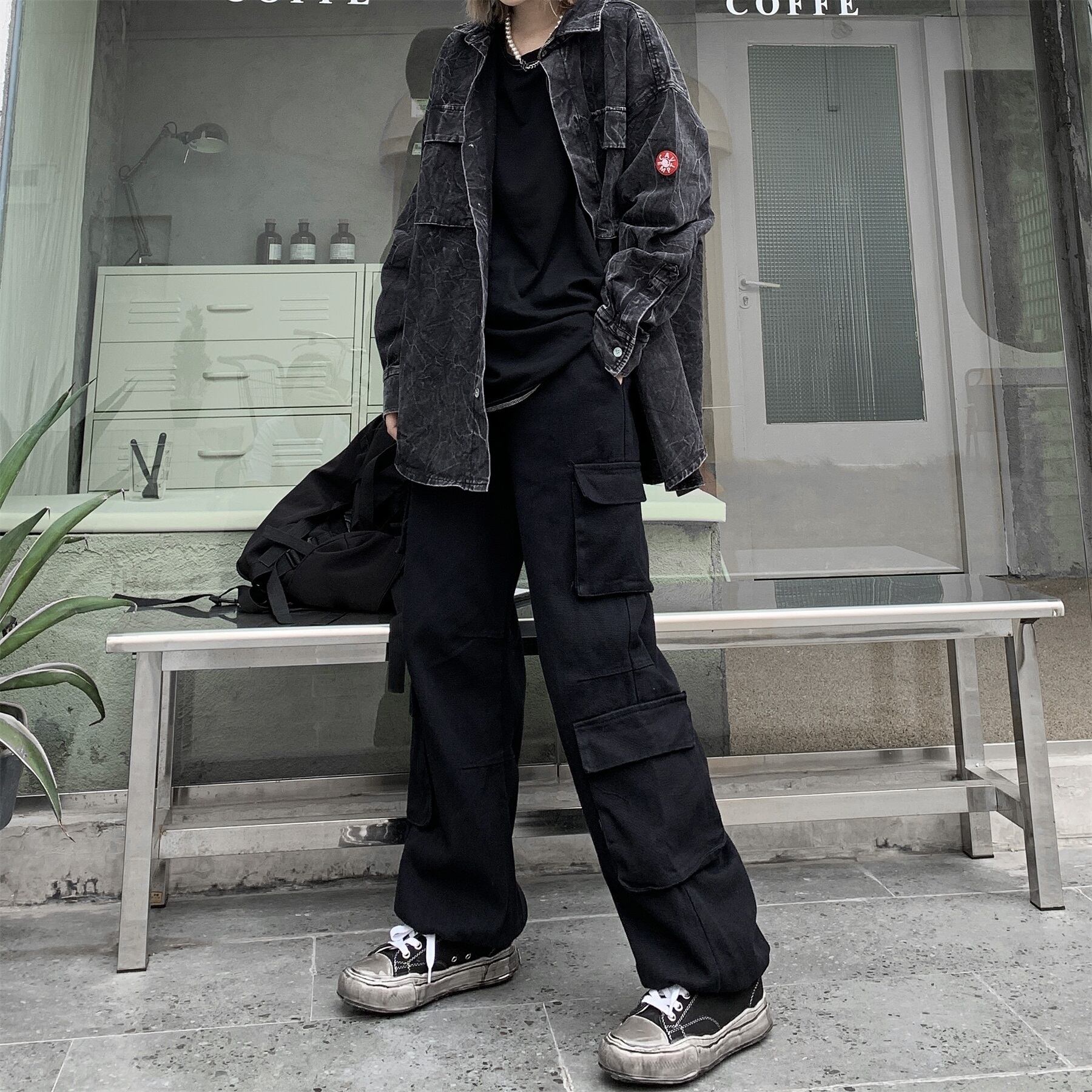 パンツレディース秋物ウィンター韓国ファッショントレンドルーズカジュアルスリムパンツ ストリート オータム 冬物 ポケット多め マルチポケット スタイル デーモン95597283170