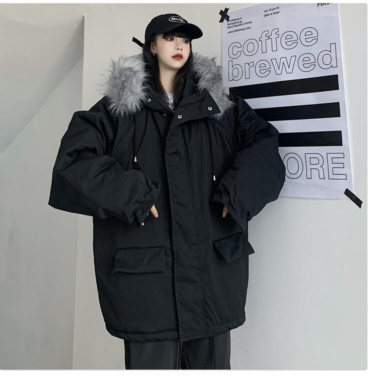 ファーカラージャケット レディースウィンター韓国ファッショントレンドルーズ コットン 冬物 スタイル デーモン76385740791