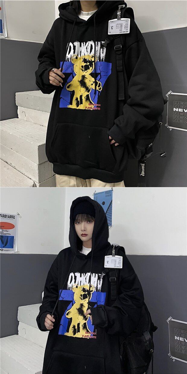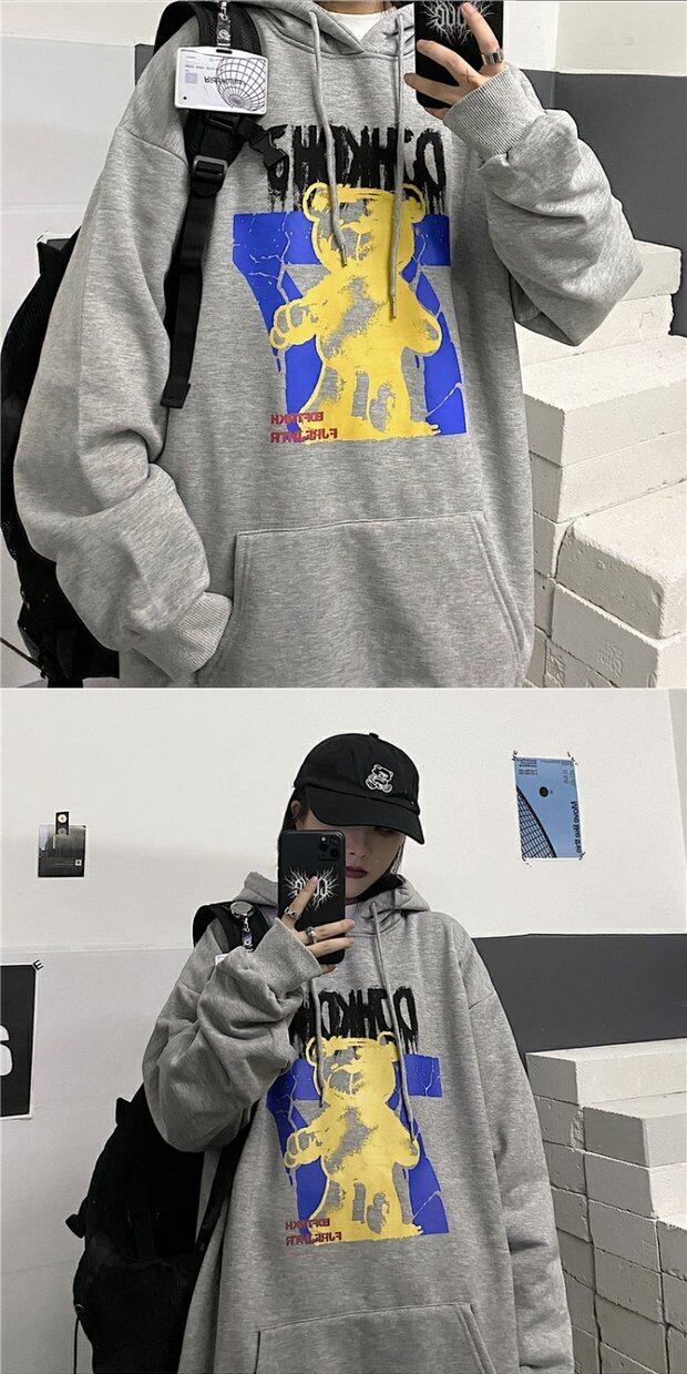 フードセーター レディース秋物ウィンター韓国ファッショントレンド厚みルーズジャケット ロング 原宿 オータム 冬物 ボーイズ スタイル 長袖 デーモン95649170614