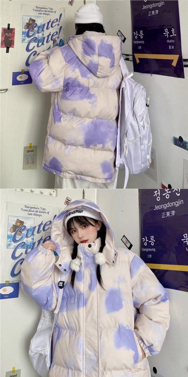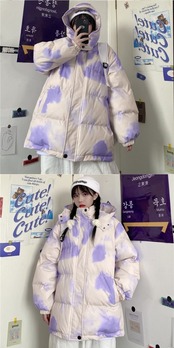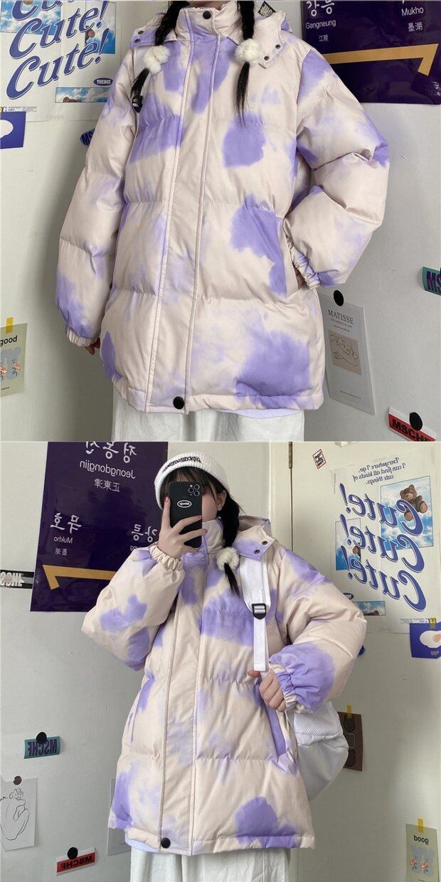 ジャケット レディースウィンター韓国ファッショントレンドルーズ コットン 冬物 パープル スタイル デーモン44610940191
