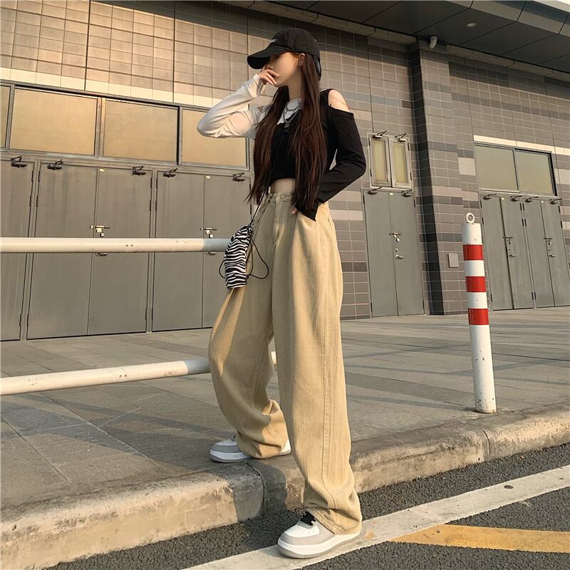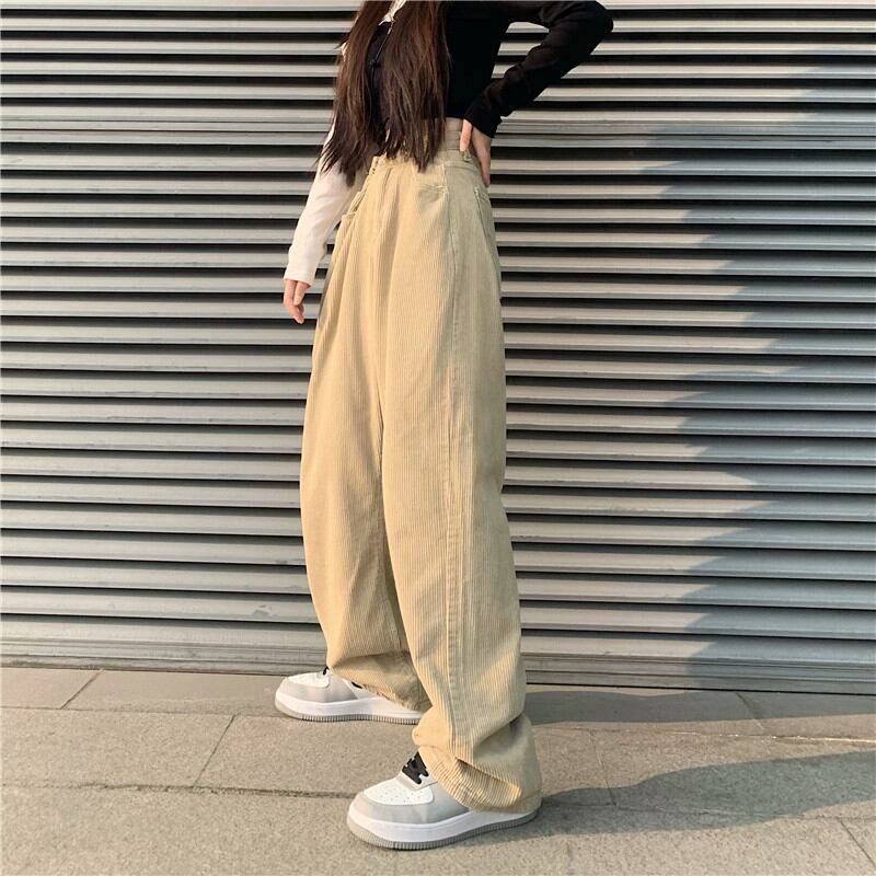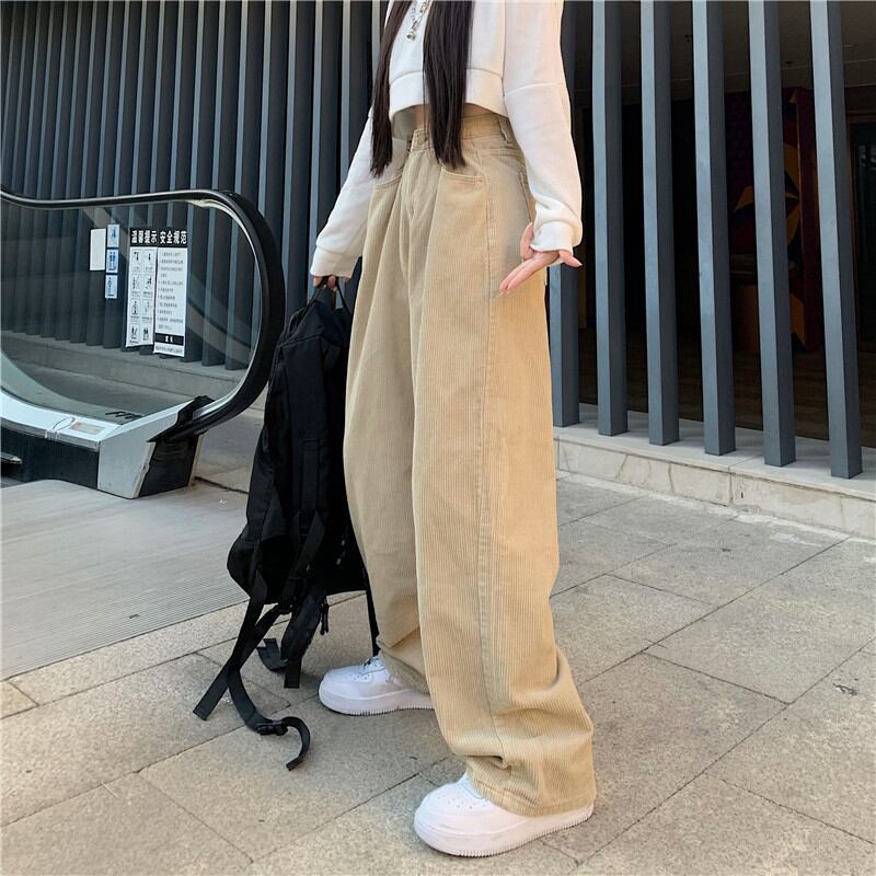 パンツ 秋物ウィンター韓国ファッショントレンドスタンダードコーデュロイルーズハイウェストウェスト レトロ オータム 冬物 スタイル ウエスト デーモン52376964379