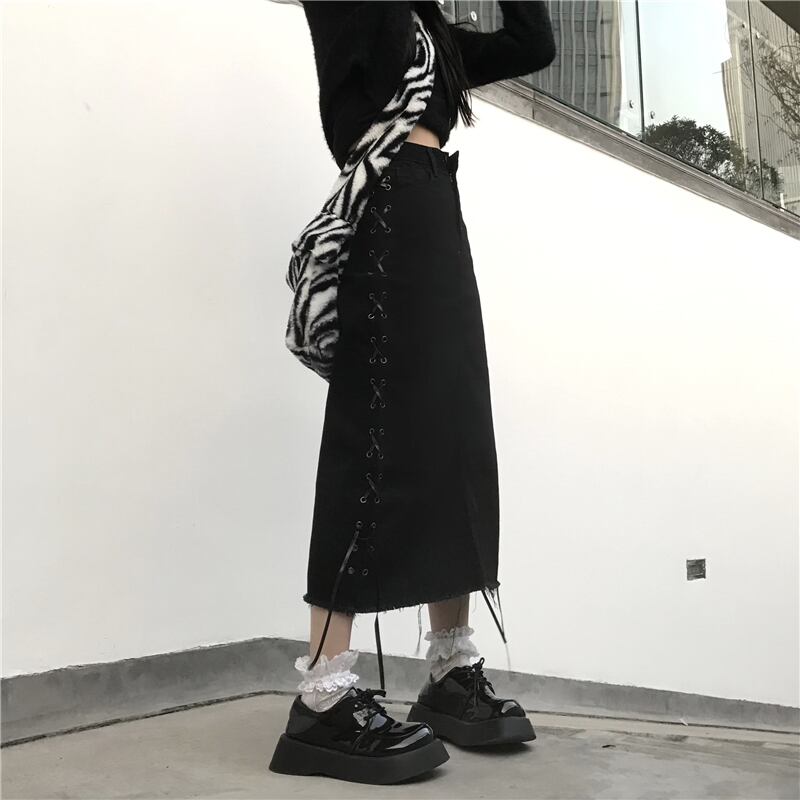 韓国ファッションスタンダードスカート トレンドダークベルト カジュアル レトロ ハーネス ミドル丈 CHIL21109383236