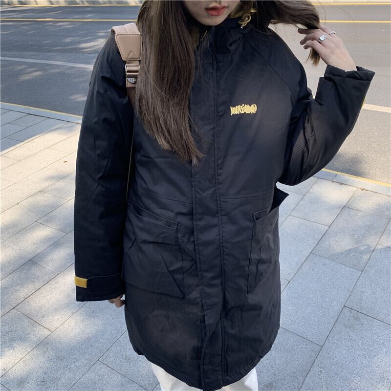 ブラックジャケット レディースウィンタールーズフード コットン 冬物 ミドル丈 CHIL52197584223